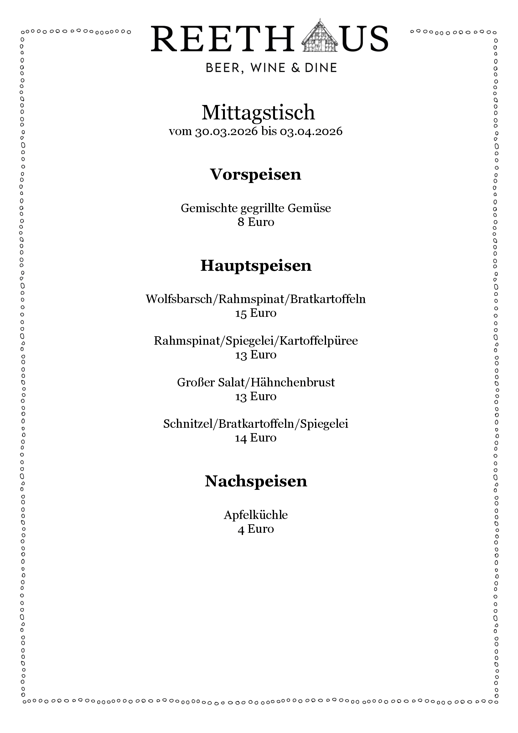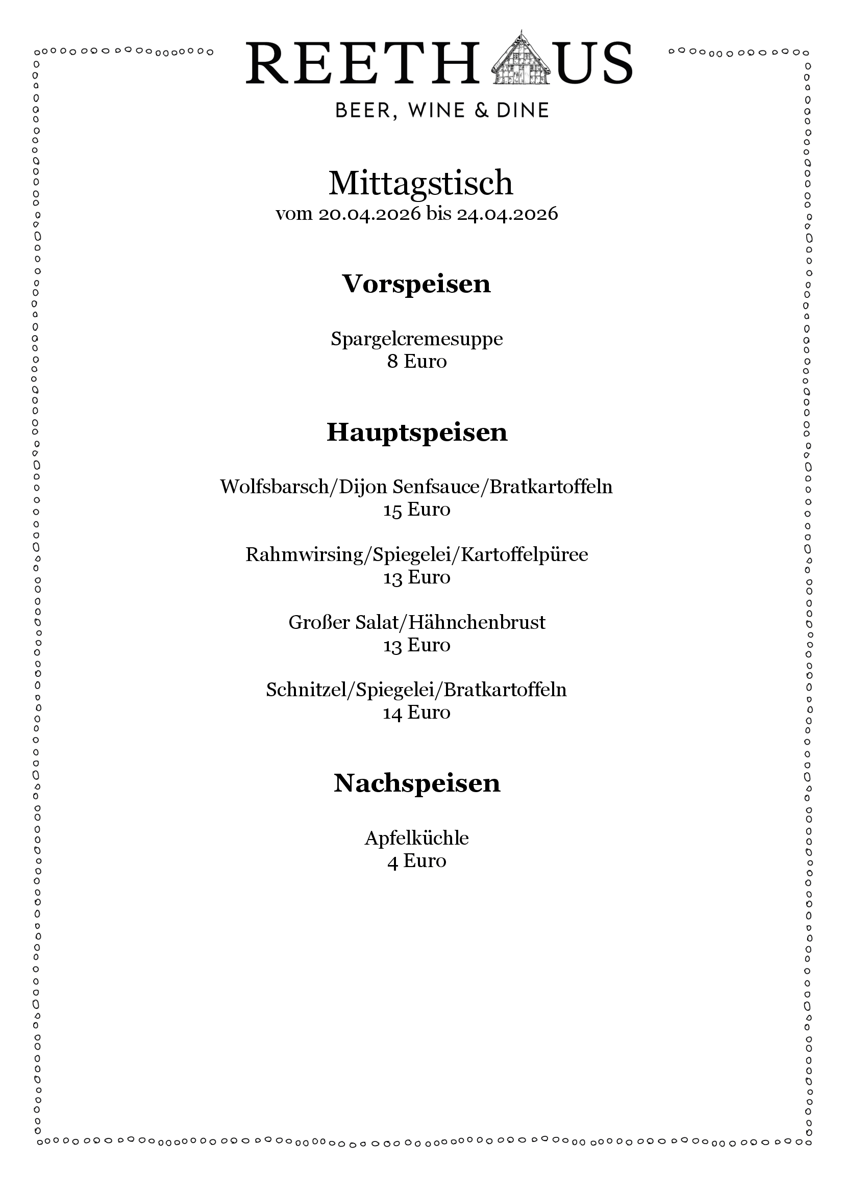 Wir freuen uns Ihnen ab sofort unseren köstlichen Mittagstisch anbieten zu können